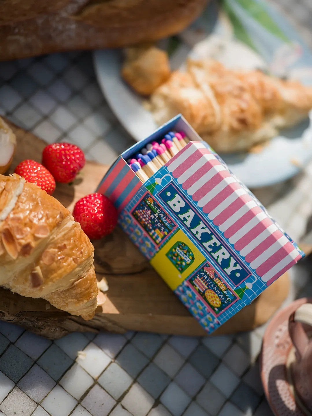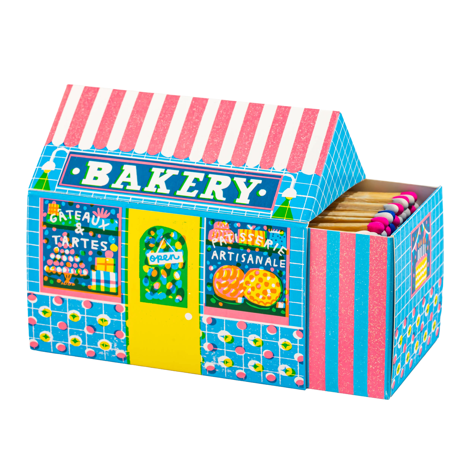 קופסת גפרורים ייחודית בצורת בית שמעוצבת כמאפייה קטנטנה ומשמחת, שמכילה 75 גפרורים באורך 10 ס"מ ותוסיף צבעוניות ואופי לכל חלל. פריט קטן עם נוכחות גדולה שמשלב בין פונקציונליות לעיצוב ויהיה מושלם בסלון, במטבח, בחדר הרחצה או בכל פינה אחרת בבית, לצד הנר האהוב עלייך.