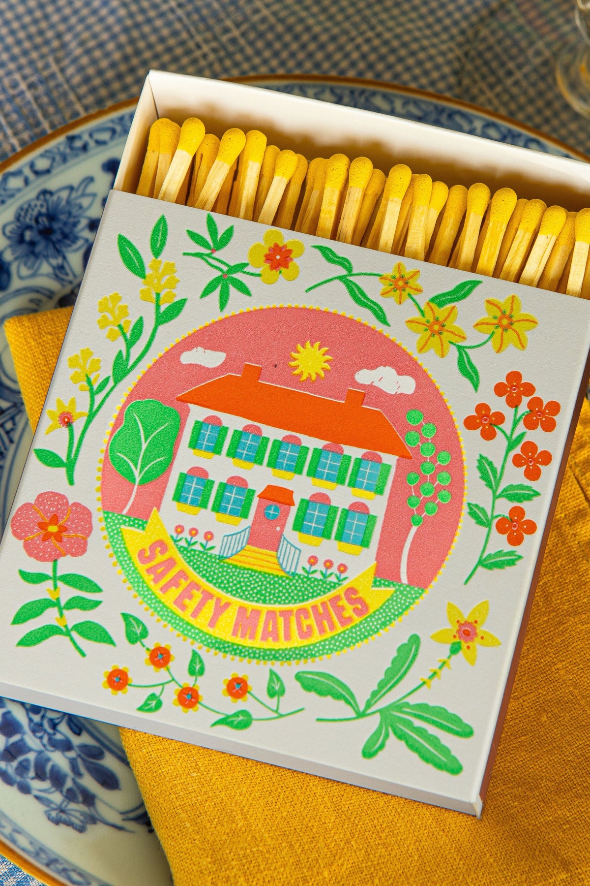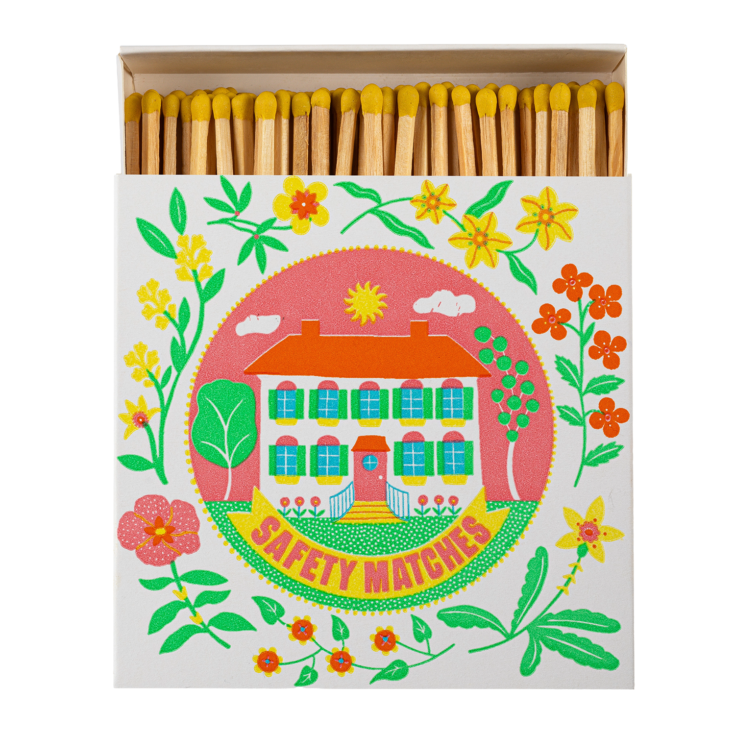 קופסת גפרורים ריבועית בעיצוב ייחודי ומשמח, המכילה 125 גפרורים באורך 10 ס"מ שתוסיף צבעוניות ואופי לכל חלל. פריט קטן עם נוכחות גדולה שמשלב בין פונקציונליות לעיצוב ויהיה מושלם בסלון, במטבח, בחדר הרחצה או בכל פינה אחרת בבית, לצד הנר האהוב עלייך.
