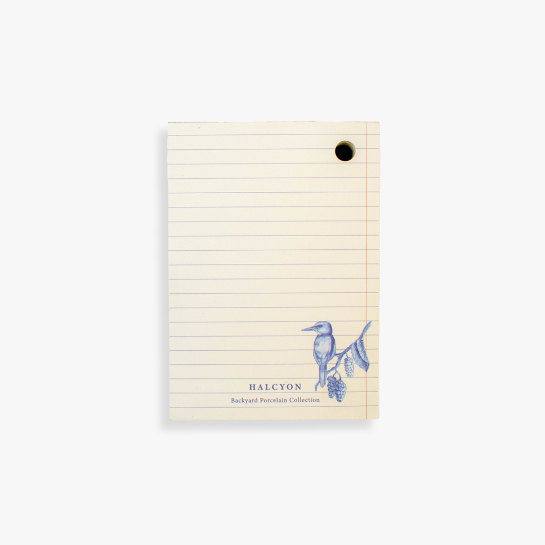 ממו-בלוק השולחני מתוך מיני-קולקציית "Backyard Porcelain" המקורית שנוצרה מצבע מים כחול - שפופרת אחת של צבע ומאות גוונים שיוצרים עומק מורכב שמצליח להציג זכרונות בוטניים של ילדות מקומית באופן פשוט ונקי.