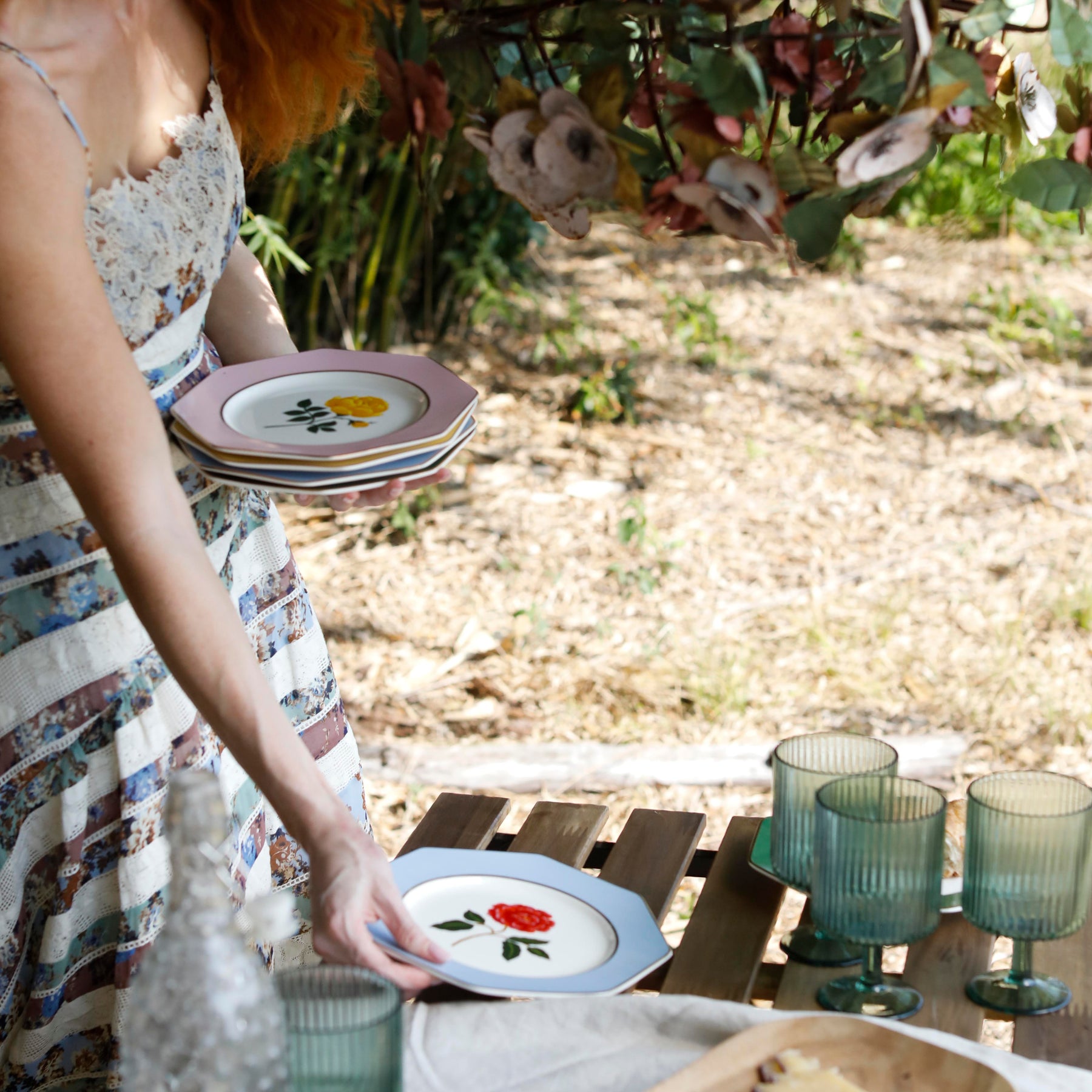 סט צלחות פורצלן מעוצבות מבית Rifle Paper.