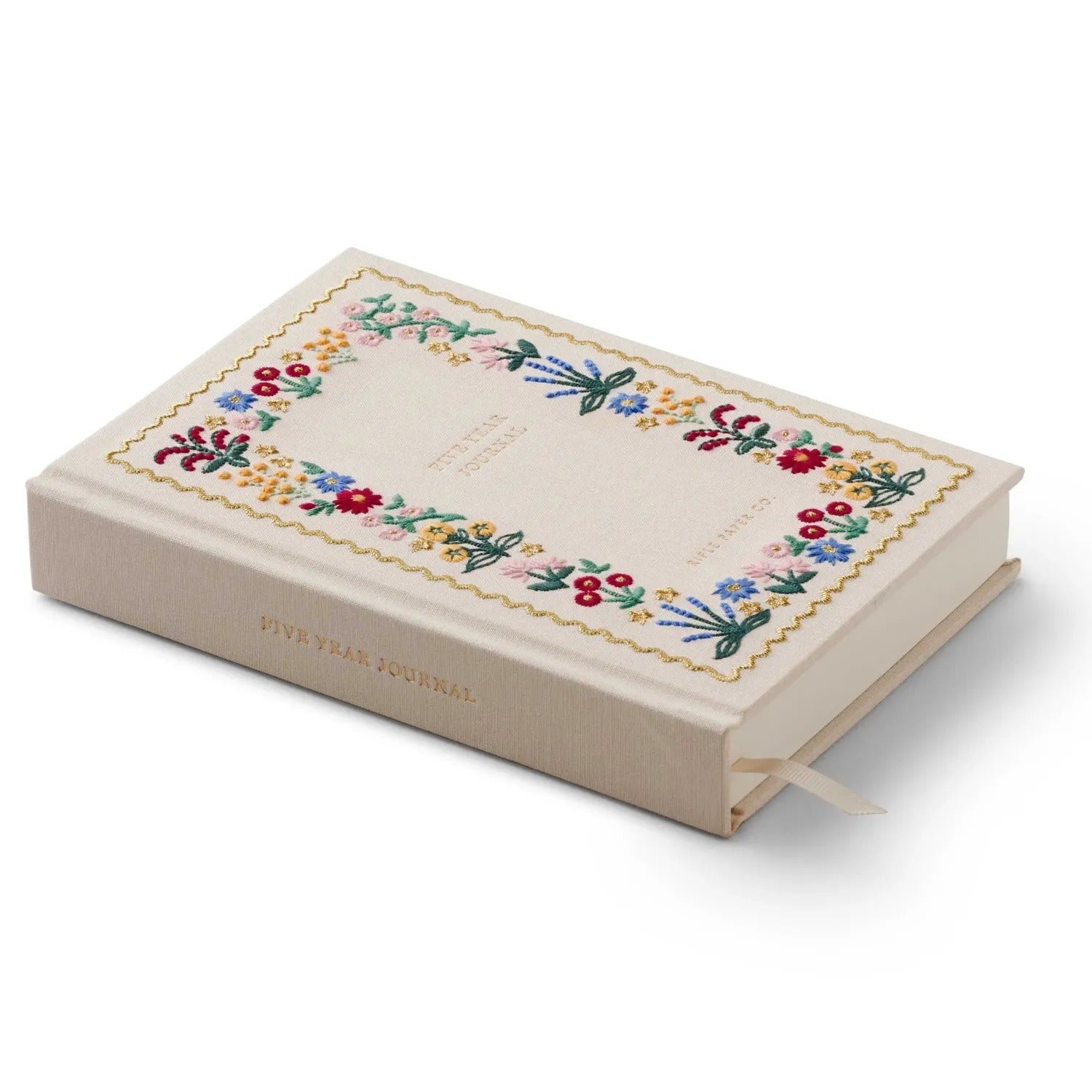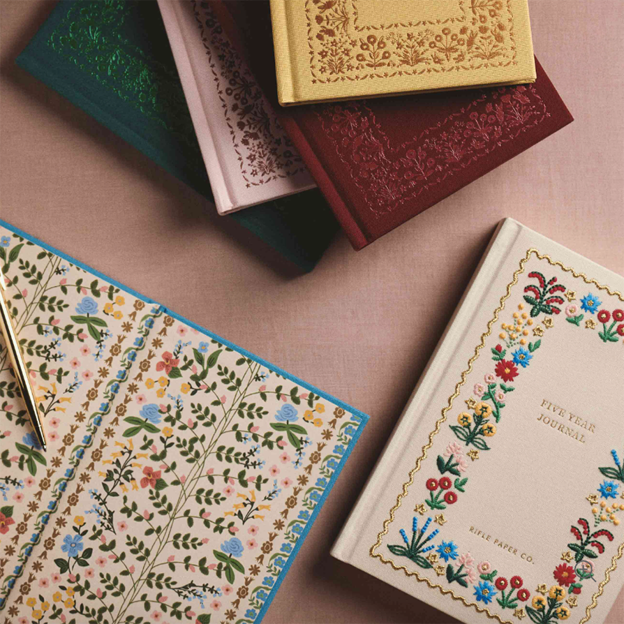 יומן 5 שנים בכריכה רקומה מבית Rifle paper.