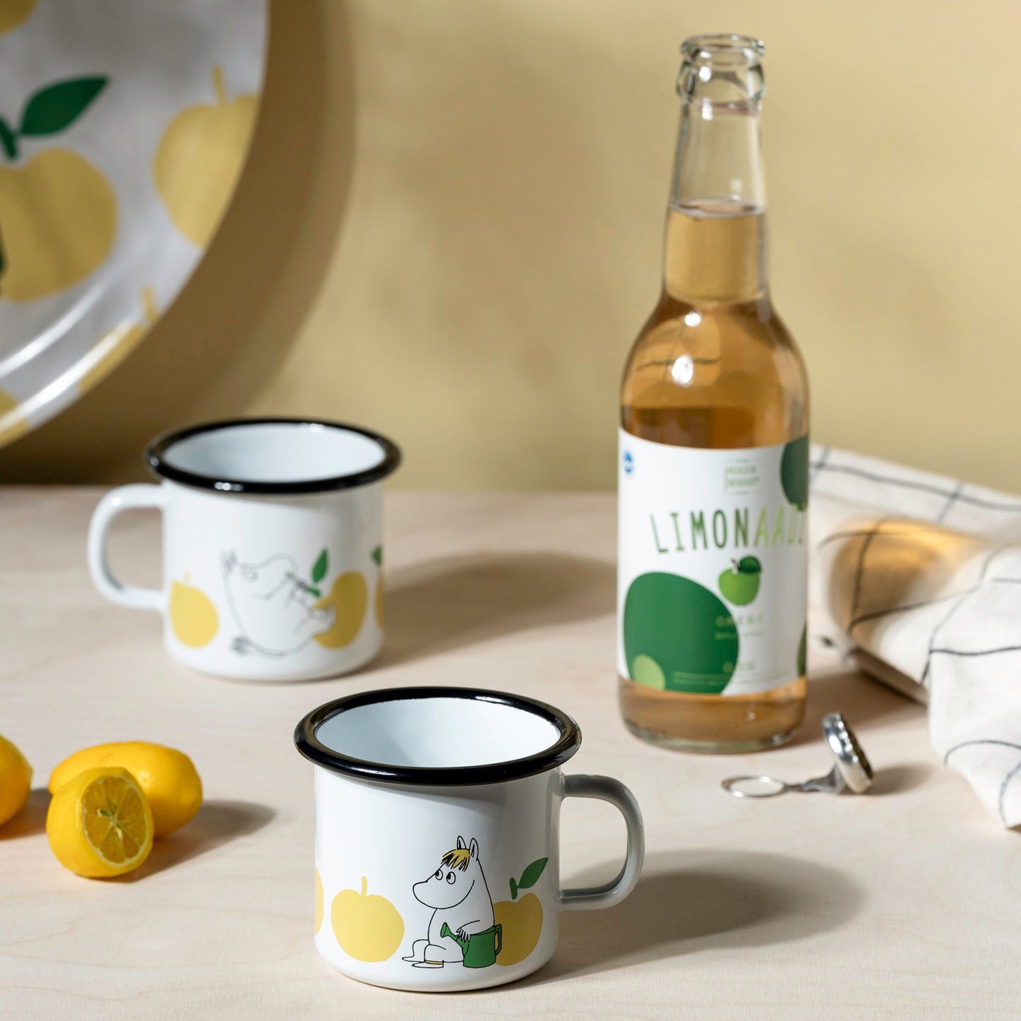 הספל עשוי מבסיס פלדת פחמן המצופה בשתי שכבות אמייל, יש לו ידית שמאפשרת החזקה נוחה והוא מעוטר באיוריה המתוקים של טובה ינסון - המאיירת המקורית של המומינים. ספל האמייל עמיד במיוחד וקל לנשיאה כך שאפשר גם לקחת אותו לטיולים ולהתנייד איתו לכל מקום. אמייל הוא חומר עמיד ובטיחותי, ולכן יתאים לשתייה קרה ולשתייה חמה.