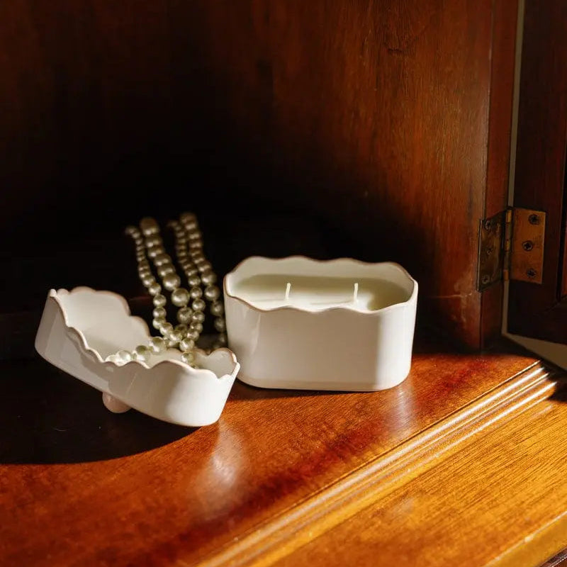 נר ריחני בכלי פורצלן מעוצב עם מכסה מקולקציית Chérie שנוצרה בהשראת תרבות הבוטיק הצרפתית המדגישה ומעריכה סגנון חיים מוקפד, מעודן ואיכותי לצד ייחודיות ואומנותיות, בדומה לתפיסה של חנויות בוטיק קטנות ואינטימיות. לנר שני פתילים שמספקים בעירה מאוזנת יותר, והוא מגיע בכלי פורצלן בסגנון וינטג׳ עם מכסה תואם ושוליים שנצבעו בעבודת יד, מה שהופך אותו לתענוג ויזואלי בנוסף להיותו ארומטי - מושלם כמתנה לעצמך או לחברה אהובה. נגמרה השעווה? אחרי ניקוי קל, קופסת הפורצלן תוכל לשמש לאחסון תכשיטים, סיכות לשיער, כלי תפירה או לכל מטרה אחרת שתבחרי :)