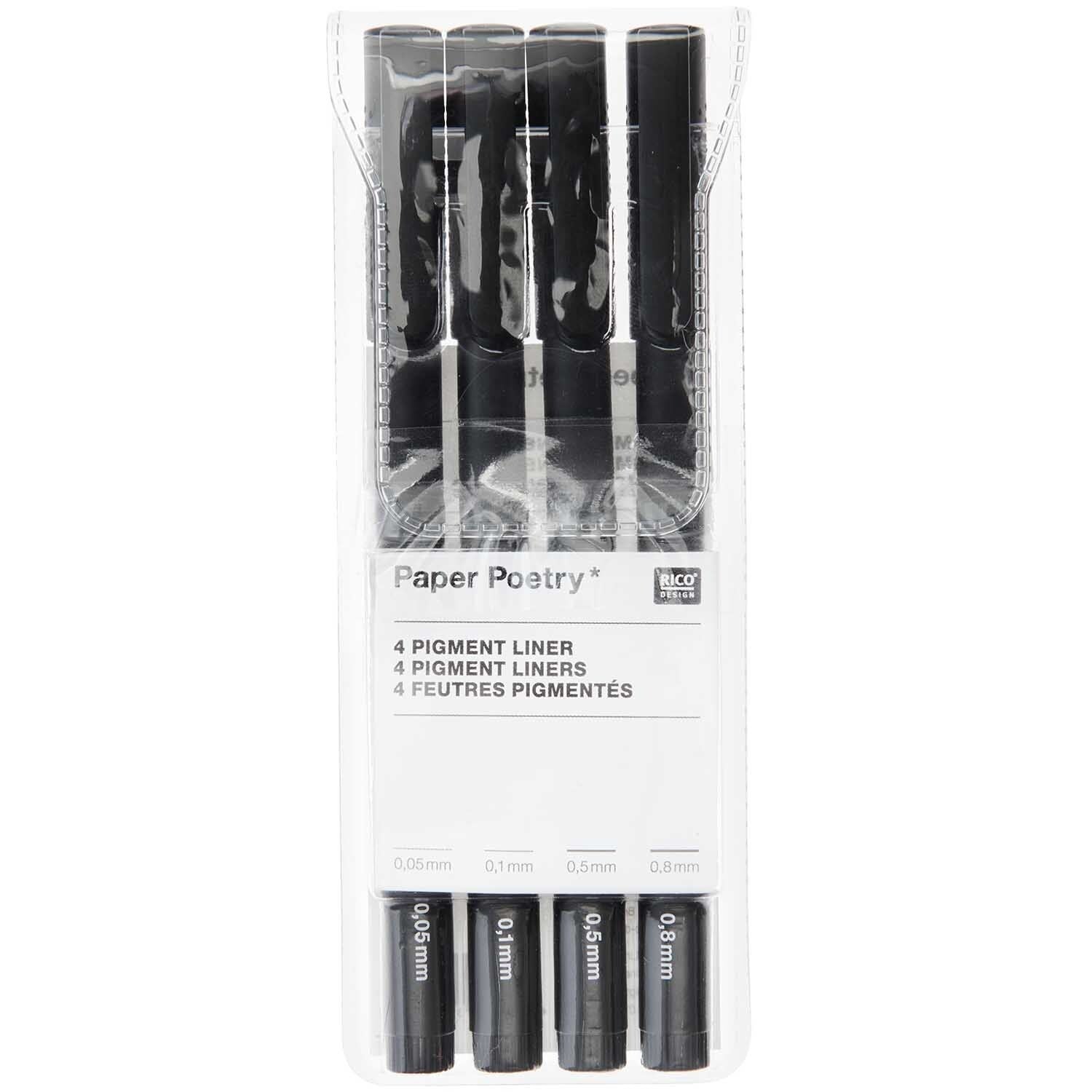 מארז עטים הכולל 4 עטים דקים (בעוביים שונים) עם דיו פיגמנטי שחור על בסיס מים שזורם באופן רציף וחלק, מתייבש במהירות ולא נמרח - מה שהופך אותם למתאימים לציור ולשרטוט. העטים יהיו מעולים במיוחד לשימוש בבולט ג׳ורנל שלך ויהפכו את חווית השרטוט למקצועית ונוחה יותר.
