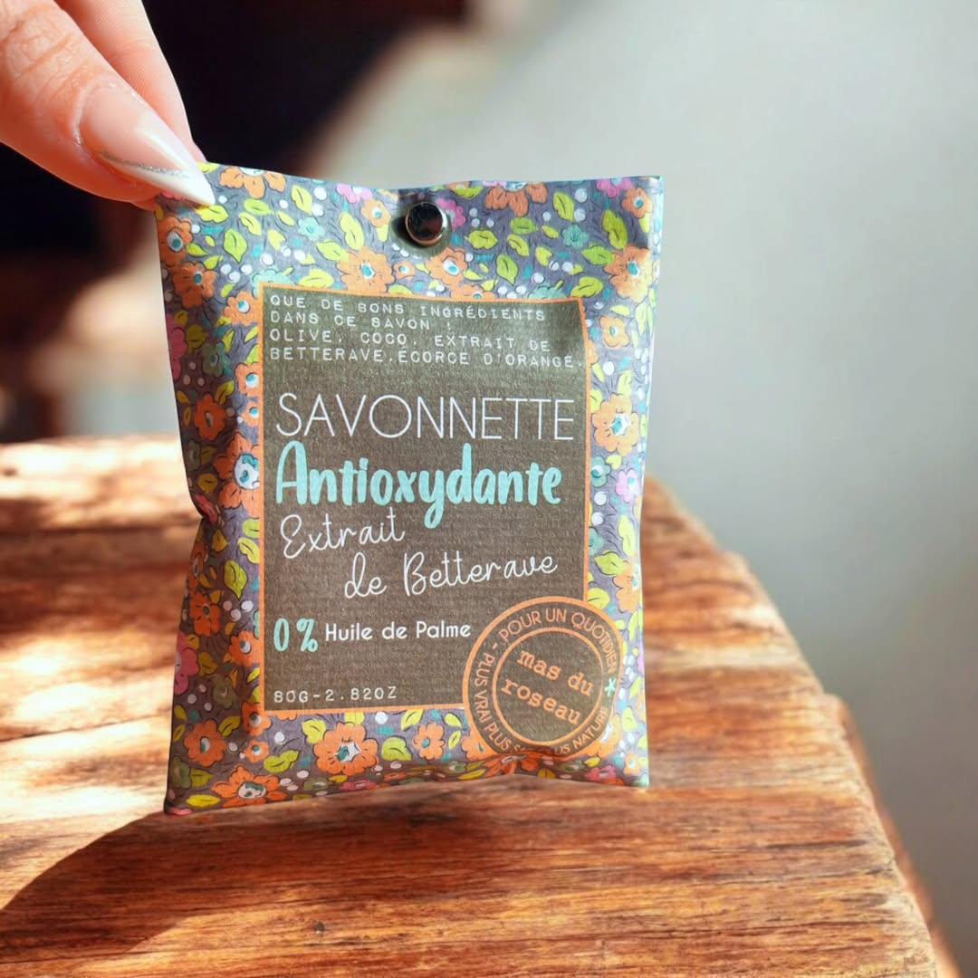 הסבון נוגד החמצון פותח כדי להעניק לעור הגנה וטיפוח מפני נזקי הסביבה, תוך שימוש ברכיבי "סופר-פוד" עוצמתיים. הוא משלב ניקוי יסודי עם יכולות הזנה גבוהות, ומיועד להעניק לעור מראה בריא וחיוני (אפקט "Bonne Mine"). הסבון מבוסס על נוסחה צרפתית מסורתית המשלבת שמני זית וקוקוס, ומועשר במיץ סלק אורגני וקליפות תפוז – שילוב עשיר בנוגדי חמצון המסייע בשמירה על חיוניות העור וגמישותו.