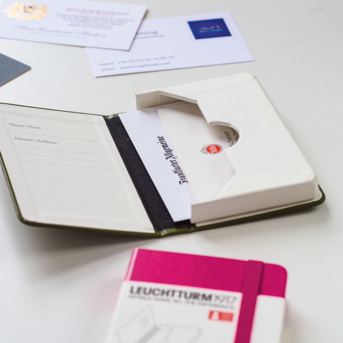 קופסה לכרטיסי ביקור מבית Leuchtturm1917 בעיצוב האייקוני של מחברות המותג, שתהיה מושלמת לאחסון כרטיסי הביקור שלך, לאיסוף כרטיסי ביקור שקיבלת או לשמירה על חפצים קטנים אחרים בהישג יד. הקופסה מכילה עד 25 כרטיסי ביקור בגודל סטנדרטי ובדיוק כמו המחברות, היא כוללת כריכה קשיחה וסגירת חבק אלסטי לפתיחה נוחה, כיאה לעיצוב המהודק של המותג ✍🏼