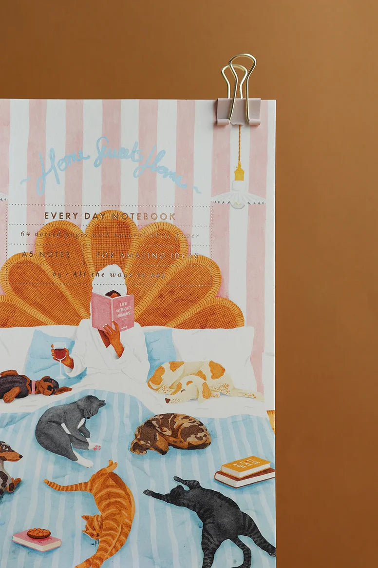 מחברת A5 בכריכה רכה עם כיתוב פויל מוזהב ואיוריה המקוריים של קלייר ליינה, מעצבת ומקימת המותג. בתוך המחברת תמצאו 64 עמודים בגריד משתנה: מצד אחד גריד נקודות עם שורת נושא ותאריך בחלק העליון, ובצד השני עמוד חלק לגמרי. המחברת בגודל מושלם לנשיאה והיא תתאים ללימודים, לשירבוטים, לכתיבת הערות ורשימות או לכל פרוייקט אחר.