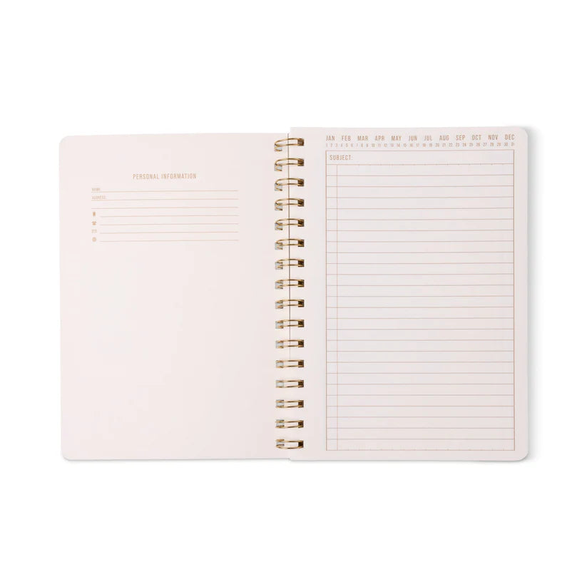 בפנים תמצאי 160 עמודי שורות מחוררים, עם שמות החודשים בראש הדפים לנוחות בארגון ומעקב, לצד עמוד פרטים אישיים ועמודי עזר שימושיים עם טבלאות המרה ומידע נוסף.