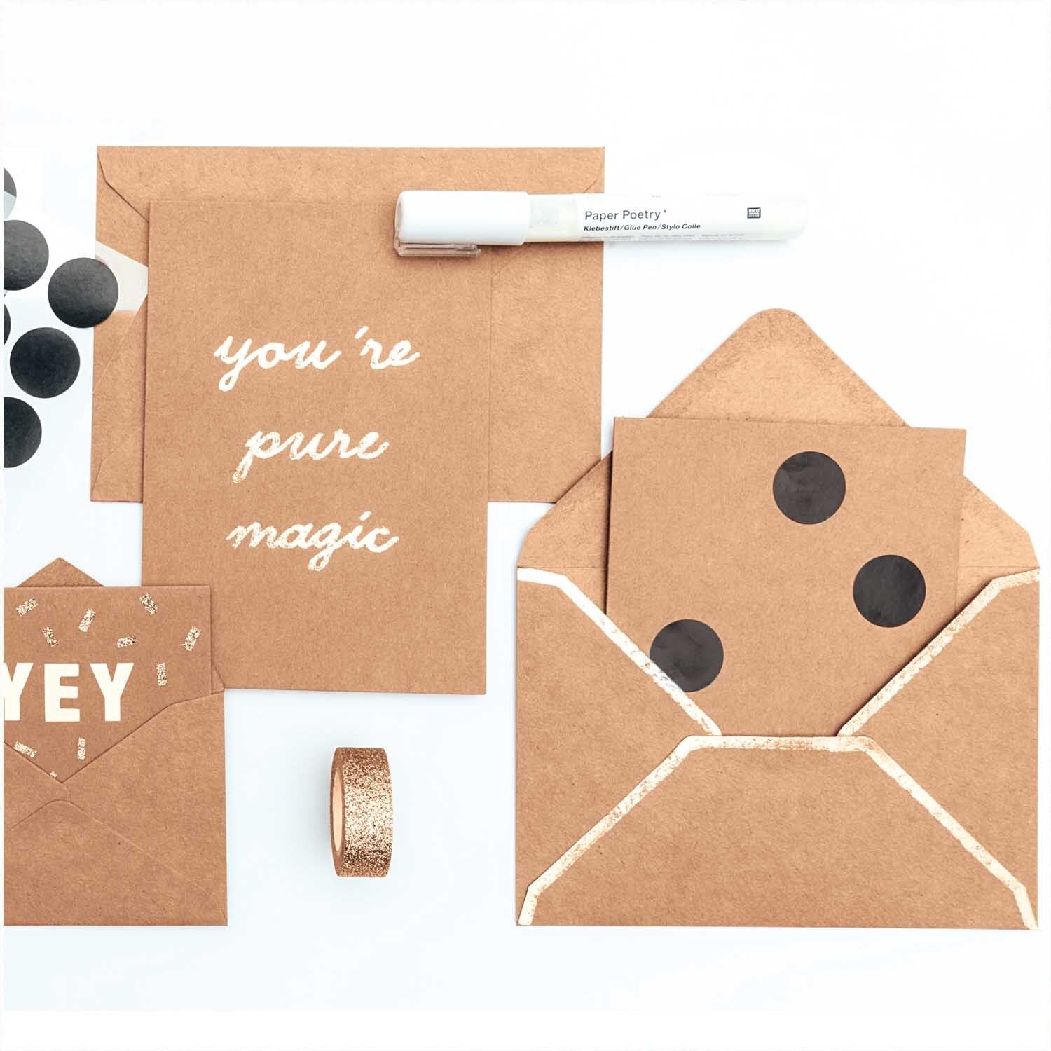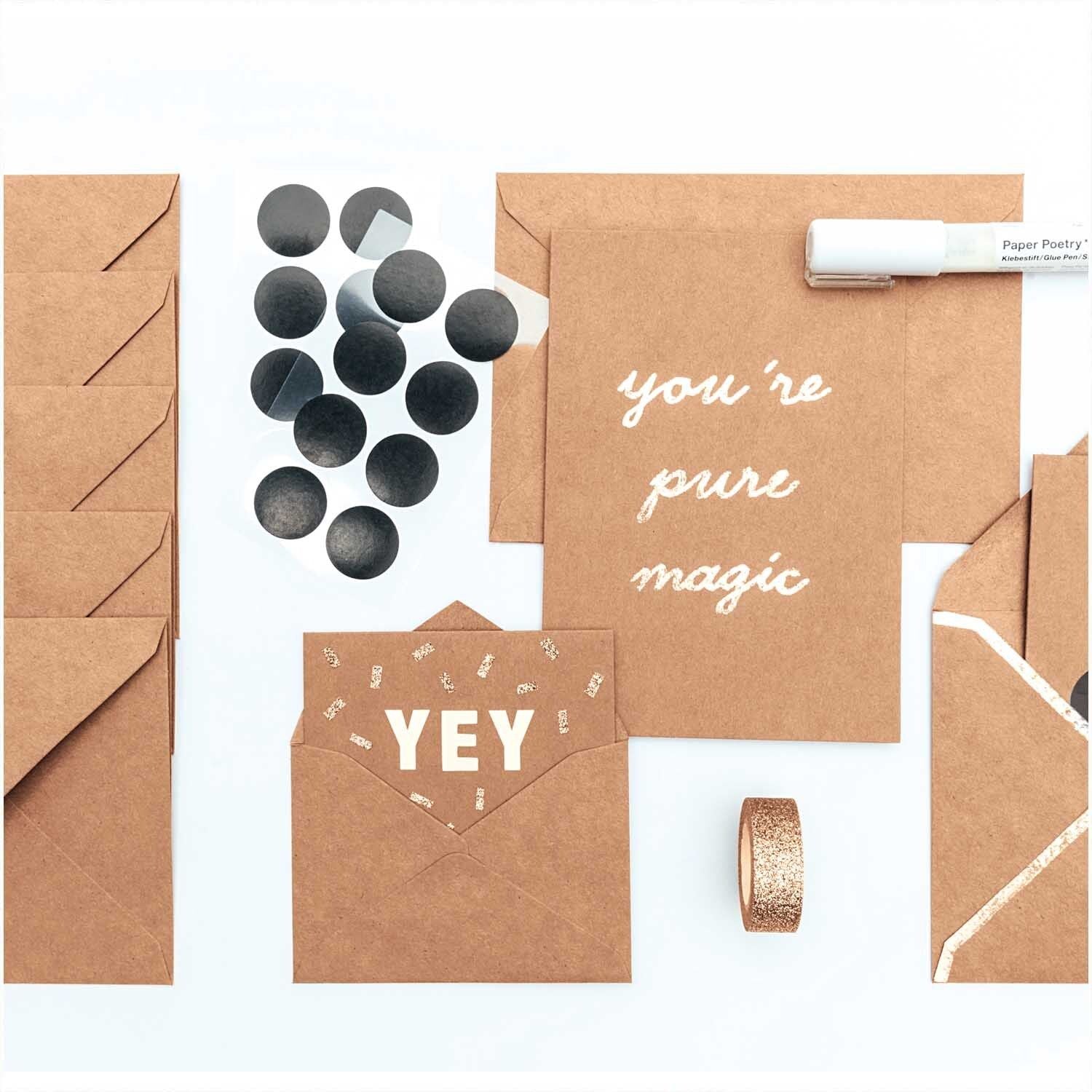 מארז כרטיסי ברכה מיני המכיל 15 כרטיסי ברכה בגודל A7 בצבע קראפט, חלקים מבפנים ומבחוץ לצד 15 מעטפות חלקות ותואמות בצבע ובגודל. מארז כרטיסי הברכה יהיה מושלם לכתיבת ברכות לכל האנשים האהובים עלייך ויתאים למגוון אירועים. כרטיסי הברכה חלקים גם בצד החיצוני שלהם מה שנותן לך הזדמנות לעצב אותם בעצמך בהתאם למאורע החגיגי ולבטא את היצירתיות והייחודיות שלך!