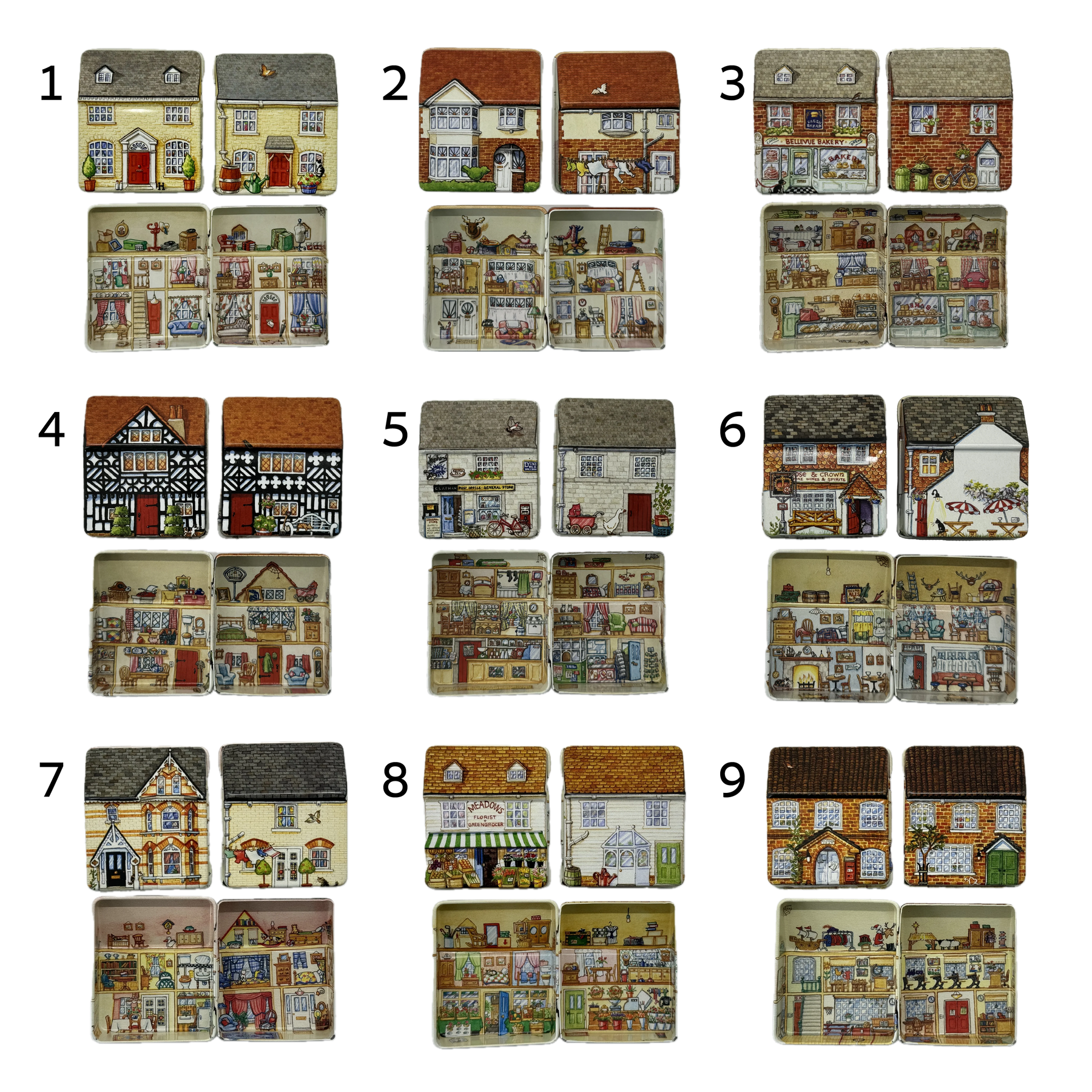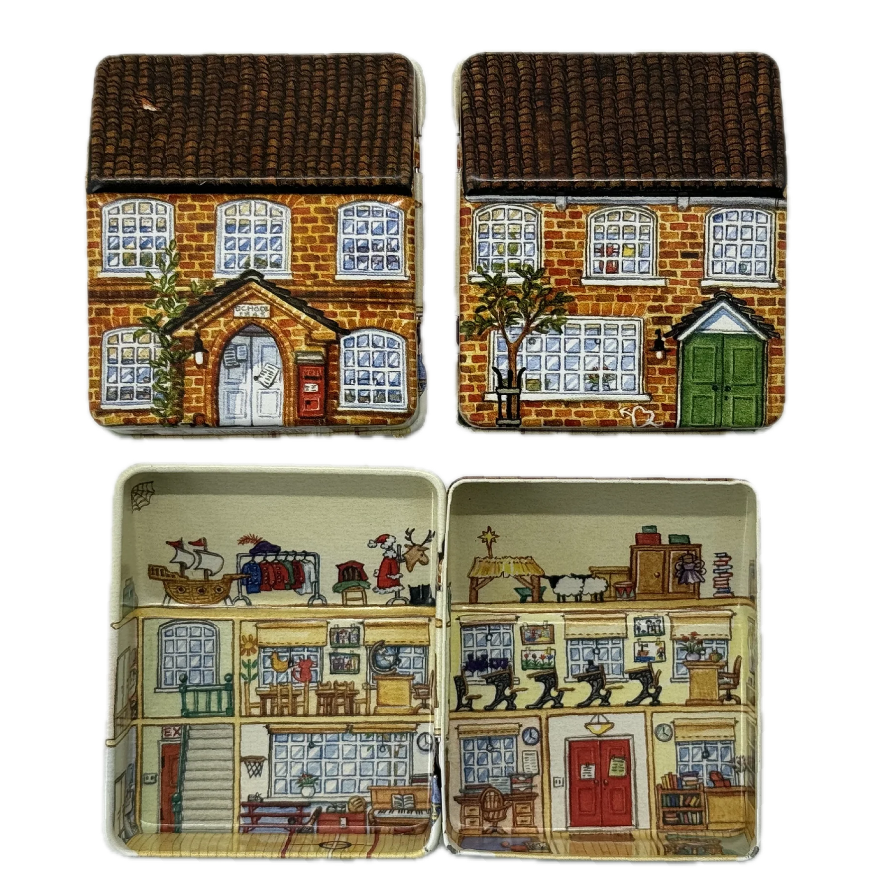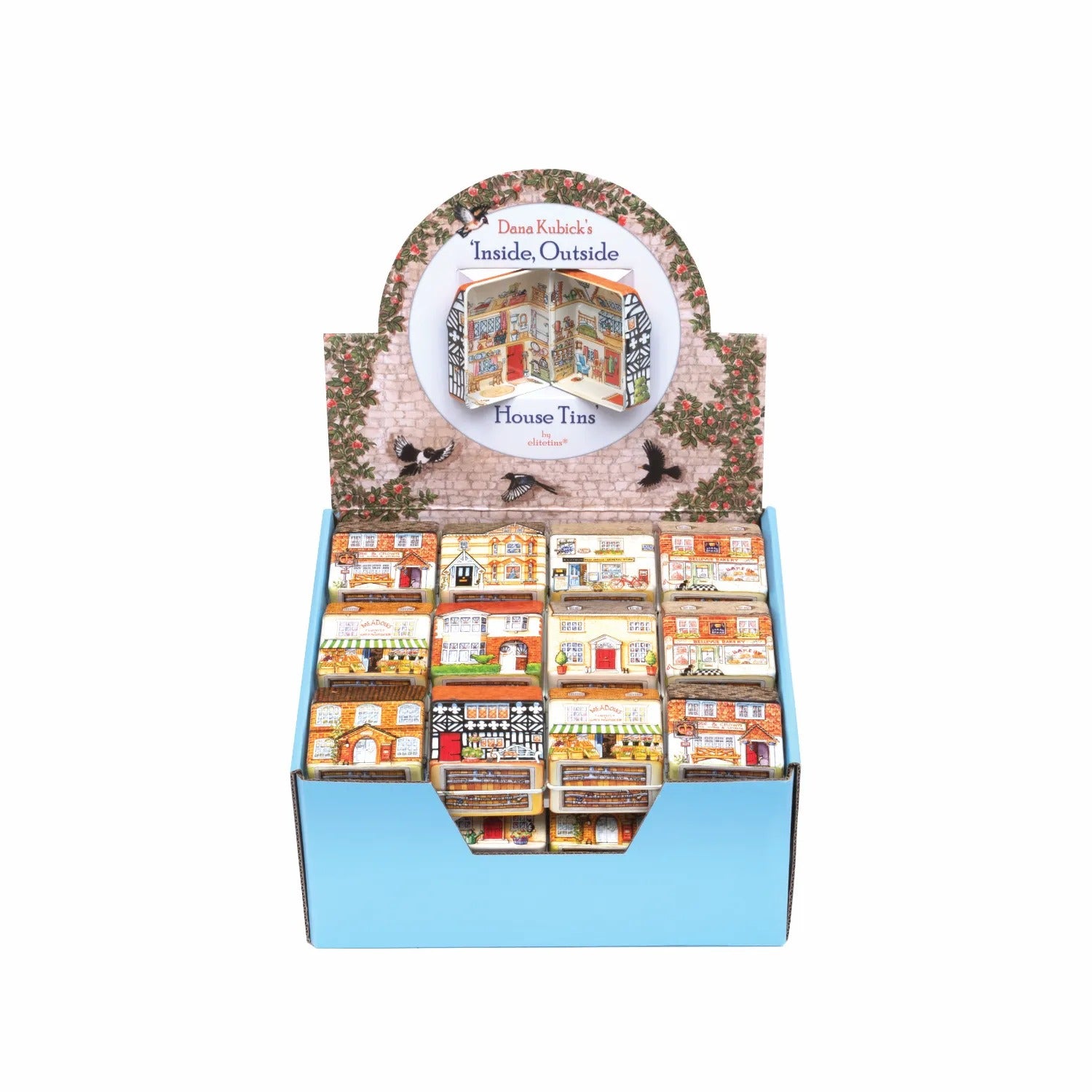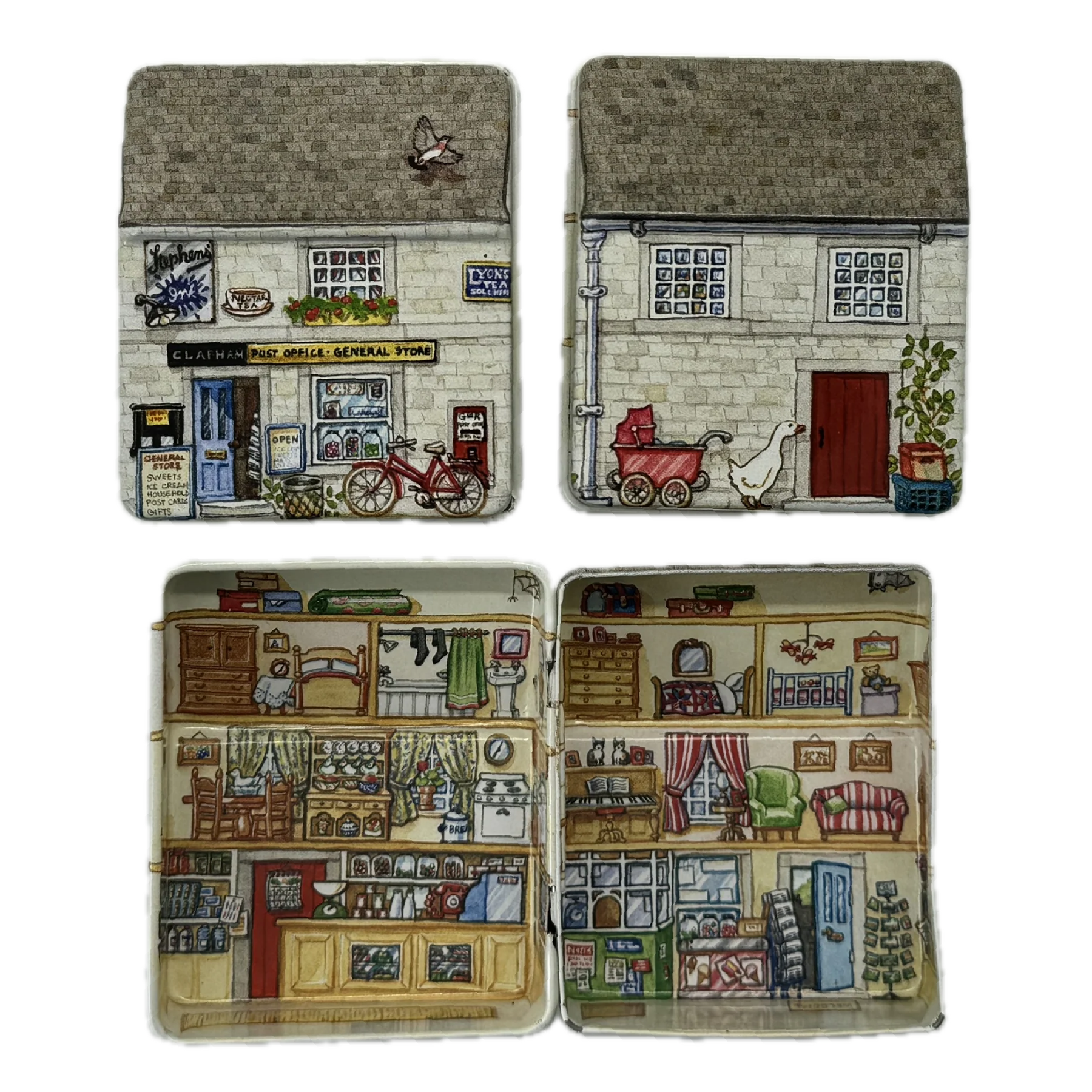 קופסת פח קטנה שמעוצבת בצורת בית בובות קטן ואפילו נפתחת כמוהו, מעוטרת באיורים קטנטנים ומלאי פרטים מתוקים שתהיה מושלמת לאריזת מתנה קטנטנה לאהוב/ה, כמתנה בפני עצמה או לשמירה על החפצים הקטנים שמפוזרים לך בתיק: מסטיקים, תכשיטים, תרופות, סיכות ועוד מלא אפשרויות אחרות.