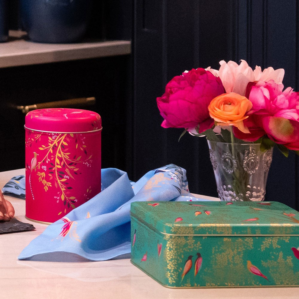 קופסת פח מלבנית בעיצובה של Sara Miller London מבית Elite Tins.