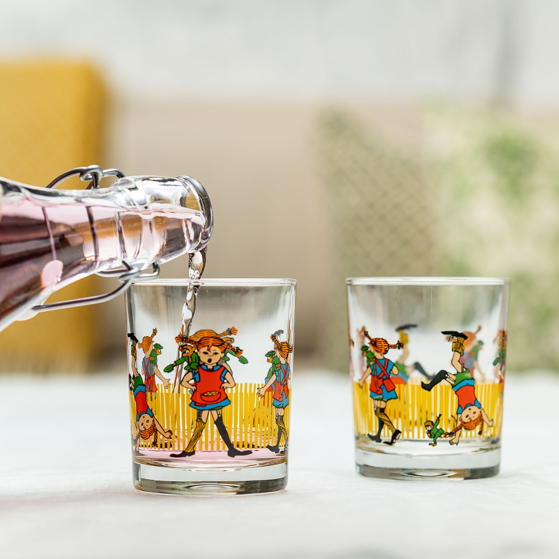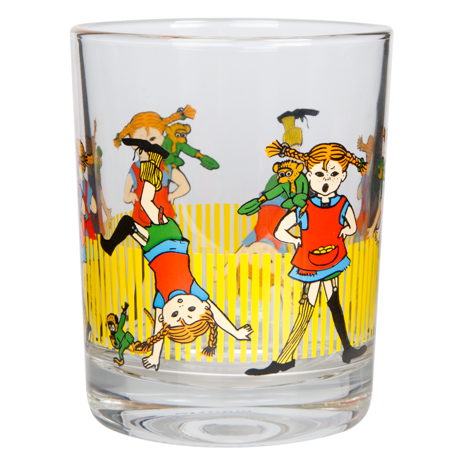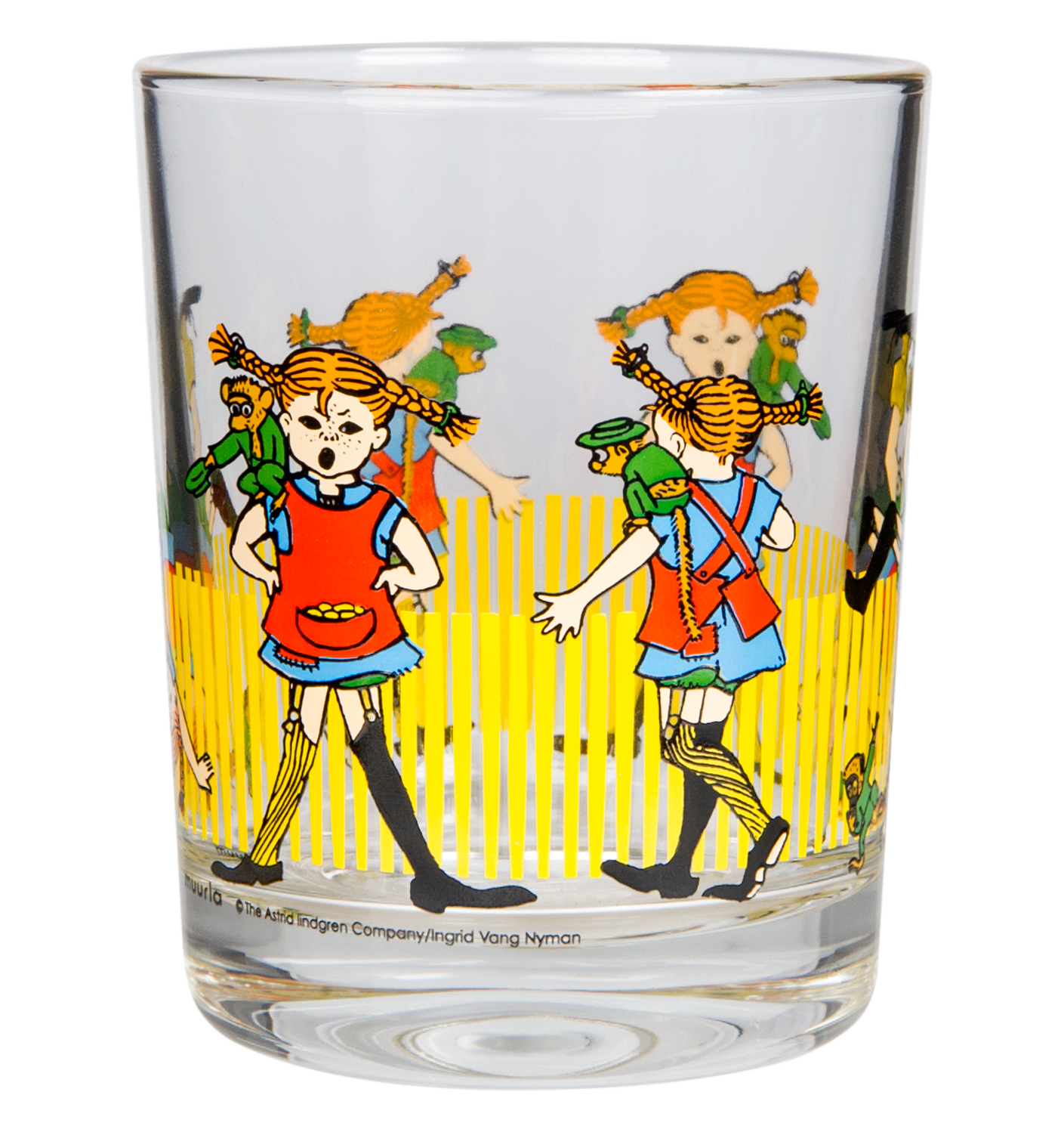 כוס זכוכית מעוטרת עם איורים מתוקים של בילבי בת גרב, הדמות שיצרה הסופרת השוודית אסטריד לינדגרן. לפי סיפוריה, בילבי היא ילדה מנומשת עם שיער כתום, בתו של פיראט שגרה בוילה וילקולה יחד עם מר נילסון, קוף המחמד שלה והסוס שלה, והיא הילדה הכי חזקה בעולם. כוס הזכוכית תתאים כמובן לשתיית משקאות קלים, אך תוכל להשתלב גם כפריט לעיצוב הבית והיא תוסיף כיף לפעילויות היום-יומיות.