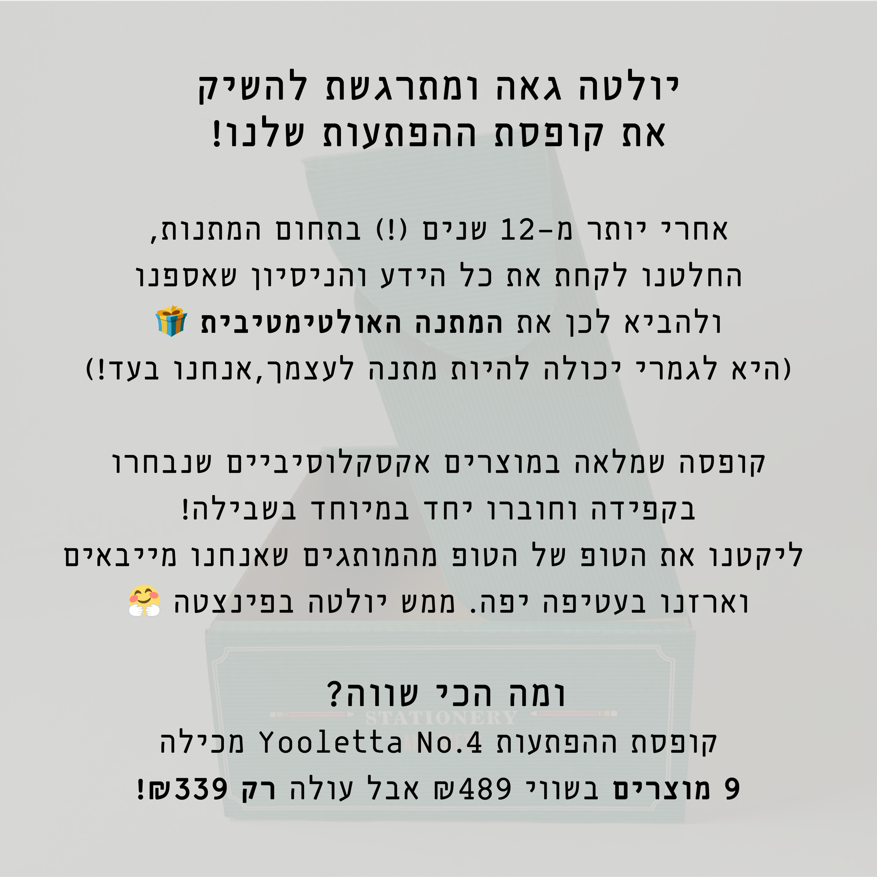 יולטה גאה ומתרגשת להשיק בפעם הרביעית את קופסת ההפתעות!